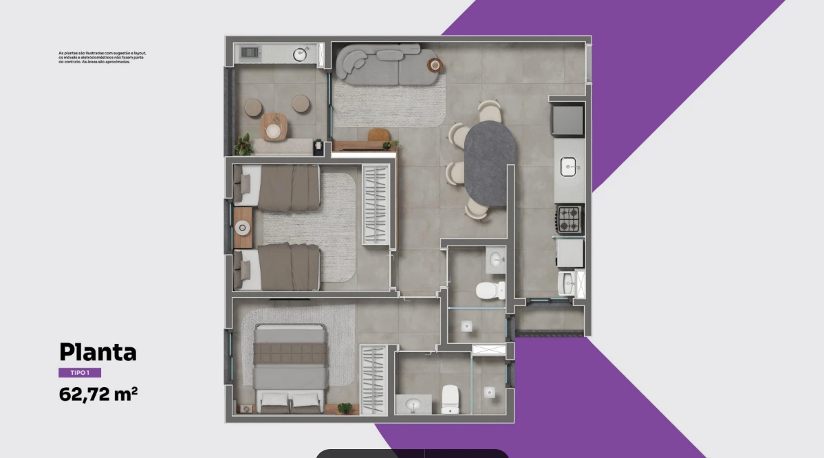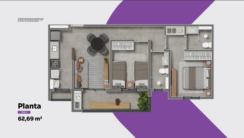 Planta 2 Dormitórios tipo 3